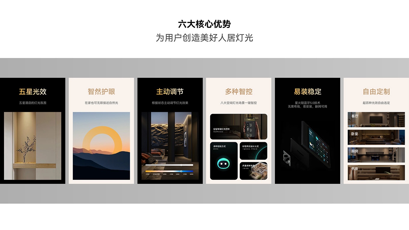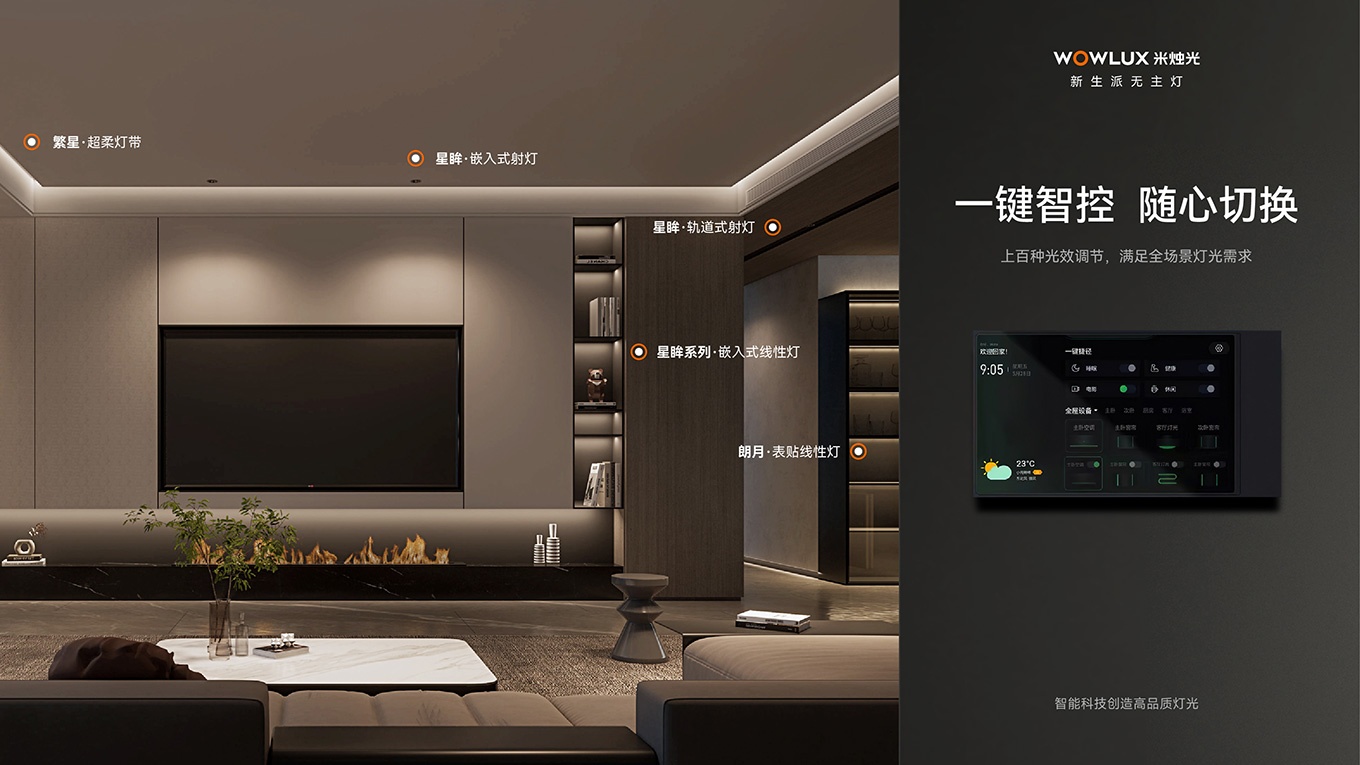 越宏集团全力打造的 WOWLUX 米烛光,是智能照明的全宅智能无主灯品牌。坚持 “让光有情,让光懂你”,为家庭带来理想光环境。在广州定制家居展,米烛光将展示其创新智能灯光产品与解决方案。智能无主灯的远程智控、语音交互功能强大,人体调光技术有效缓解眼部疲劳、保护视力。联合创智品牌设计公司助力米烛光塑造全新品牌形象。